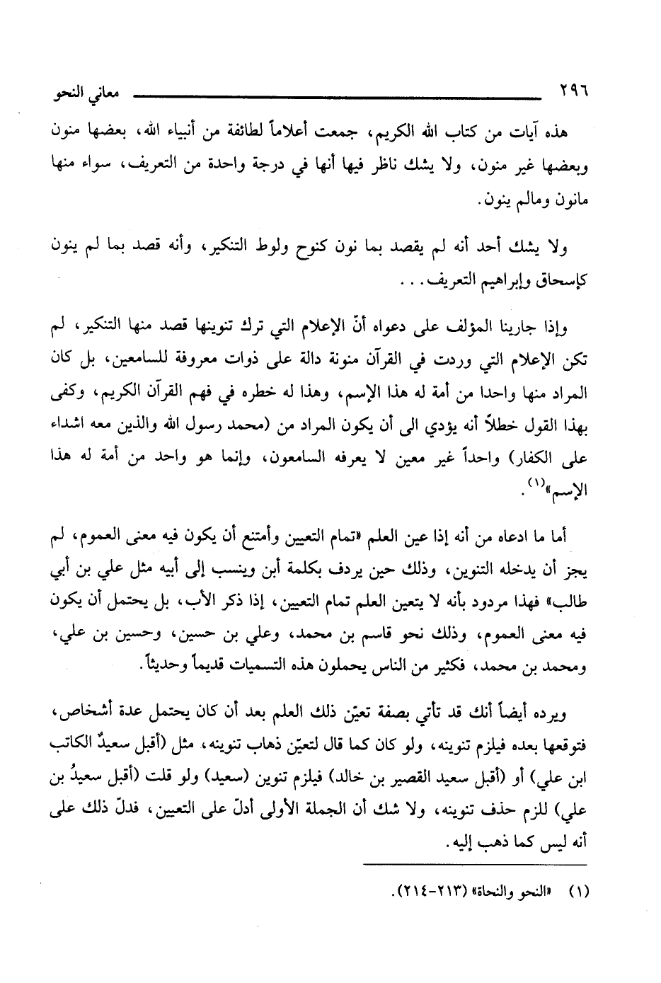 ولا يشك أحد أنه لم يقصد بما نون كنوح ولوط التنكير، وانه قصد بما لم ينون كإسحاق وإبراهيم التعريف ..