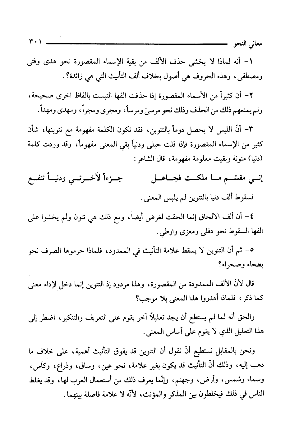 1 - أنه لماذا لا يخشى حذف الألف من بقية الأسماء المقصورة نحو هدى وفتى ومصطفى، وذه الحروف هي أصول بخلاف ألف التأنيث التي هي زائدة؟