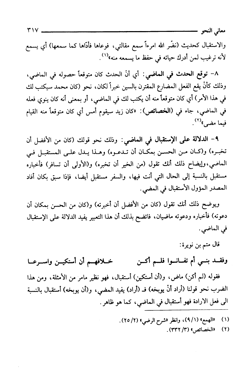 ويوضح ذلك أنك تقول (كان من الأفضل أن أخبرته) و (كان من الحسن بمكان أن دعوته) فأخباره ودعوته ماضيان، فاتضح بذلك أن هذا التعبير يفيد الدلالة على الاستقبال في الماضي.