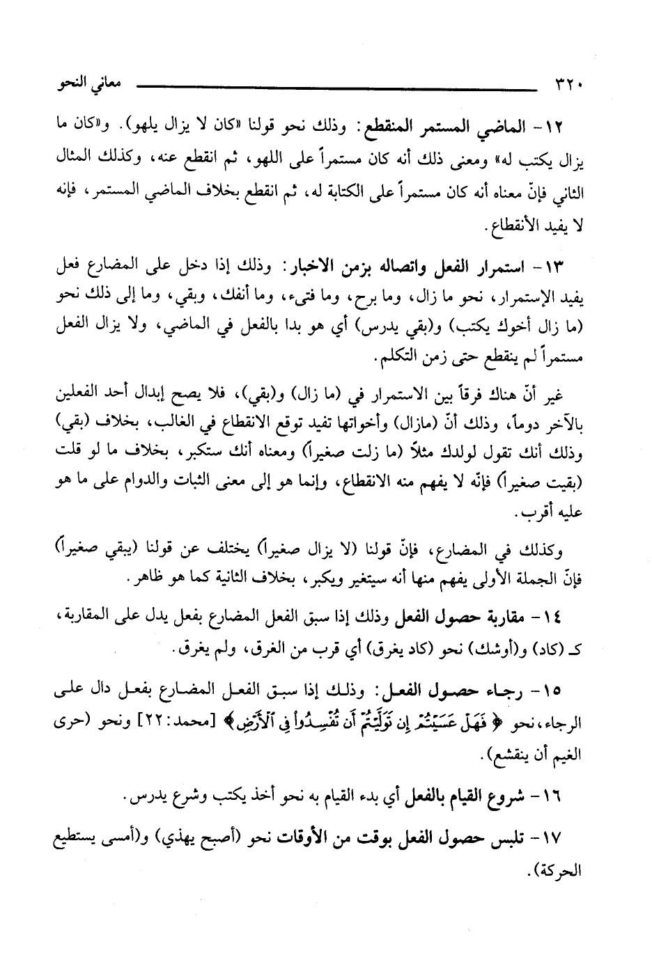 17 تلبس حصول الفعل بوقت من الأوقات نحو: أصبح يهذي، وأمسى يستطيع الحركة.
