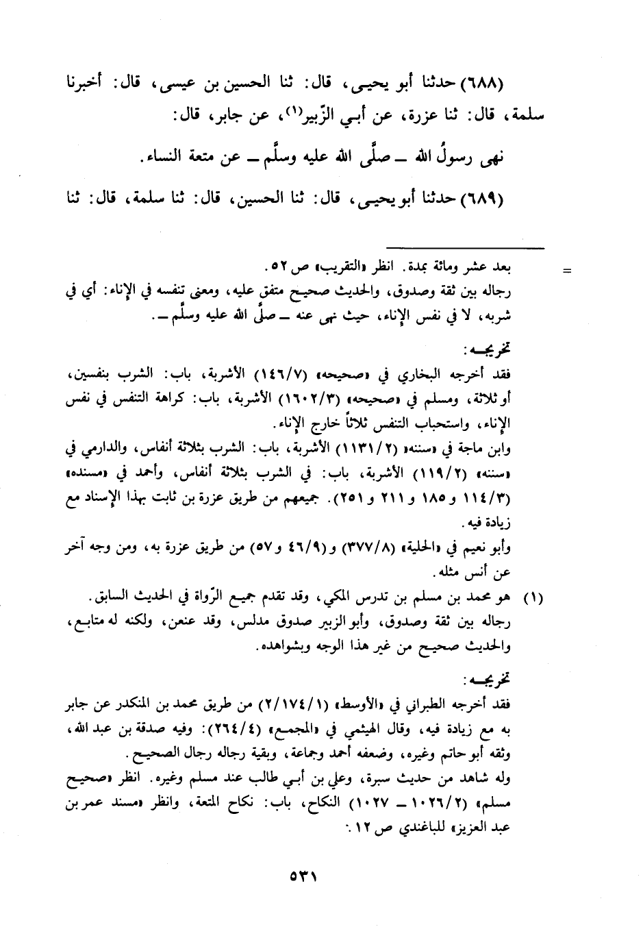 حَدَّثَنَا أَبُو يَحْيَى، قال: ثنا الْحُسَيْنُ بْنُ عِيسَى، قال: أَخْبَرَنَا سَلَمَةُ، قال: ثنا عَزْرَةُ، عَنْ أَبِي الزُّبَيْرِ، عَنْ جَابِرٍ، قَالَ: «نَهَى رَسُولُ اللَّهِ صَلَّى اللهُ عَلَيْهِ وَسَلَّمَ §عَنْ مُتْعَةِ النِّسَاءِ»
