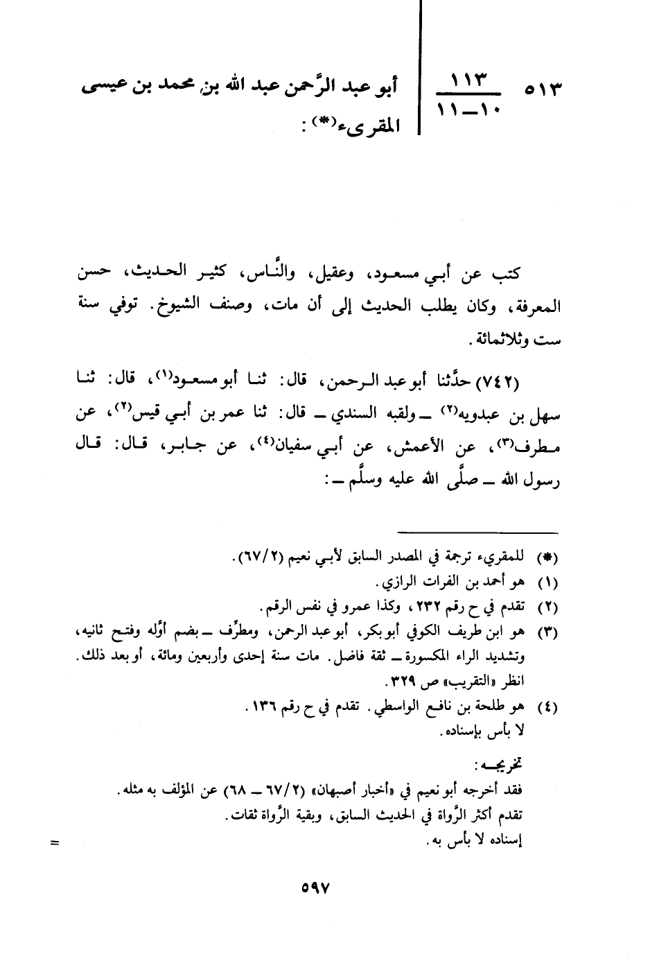 513 - أَبُو عَبْدِ الرَّحْمَنِ عَبْدُ اللَّهِ بْنُ مُحَمَّدِ بْنِ عِيسَى الْمُقْرِئُ
