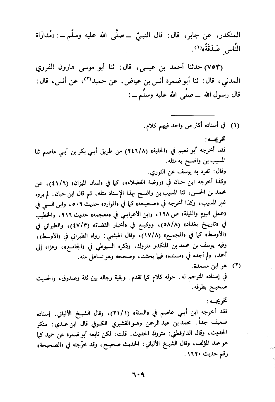 حَدَّثَنَا أَحْمَدُ بْنُ عِيسَى، قال: ثنا أَبُو مُوسَى هَارُونُ الْفَرْوِيُّ الْمَدَنِيُّ، قال: ثنا أَبُو ضَمْرَةَ بْنُ عِيَاضٍ، عَنْ حُمَيْدٍ، عَنْ أَنَسٍ، قَالَ: قَالَ رَسُولُ اللَّهِ صَلَّى اللهُ عَلَيْهِ وَسَلَّمَ -[610]-: «إِنَّ §اللَّهَ احْتَجَبَ التَّوْبَةَ عَنْ كُلِّ صَاحِبِ بِدْعَةٍ»