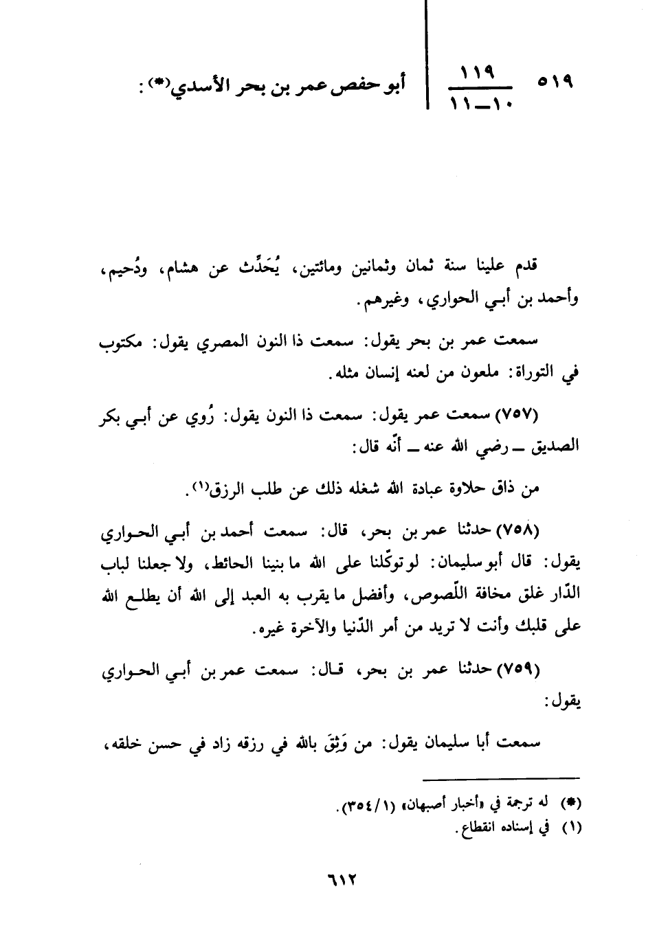 519 - أَبُو حَفْصٍ عُمَرُ بْنُ بَحْرٍ الأَسَدِيُّ