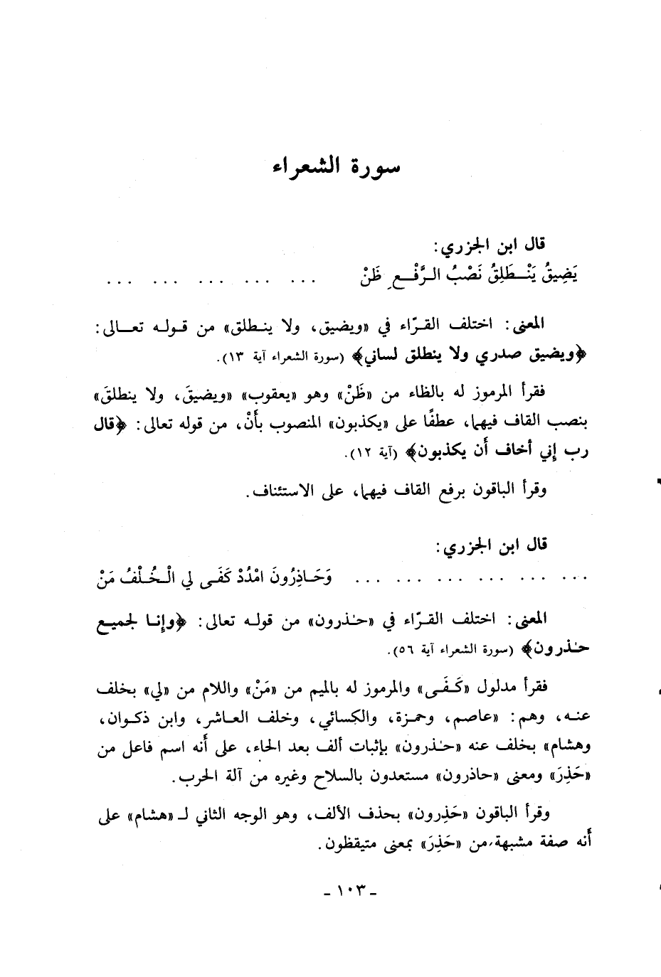 المعنى: اختلف القرّاء في «حذرون» من قوله تعالى: وَإِنَّا لَجَمِيعٌ حاذِرُونَ (سورة الشعراء آية 56).