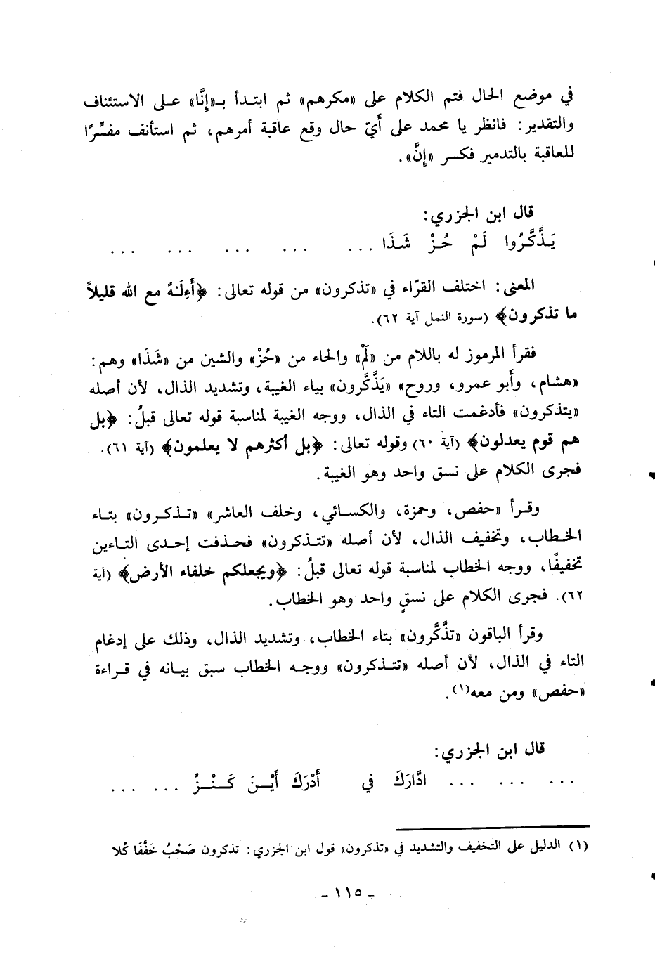 المعنى: اختلف القرّاء في «تذكرون» من قوله تعالى: أَإِلهٌ مَعَ اللَّهِ قَلِيلًا ما تَذَكَّرُونَ (سورة النمل آية 62).
