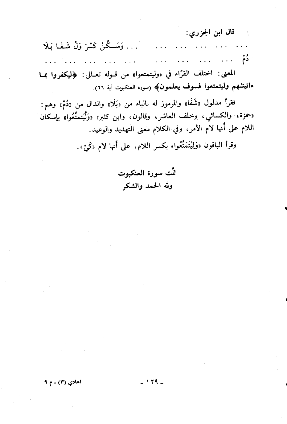 تمّت سورة العنكبوت ولله الحمد والشكر