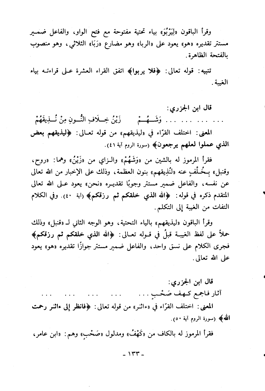 تنبيه: قوله تعالى: فَلا يَرْبُوا اتفق القراء العشرة على قراءته بياء الغيبة.
