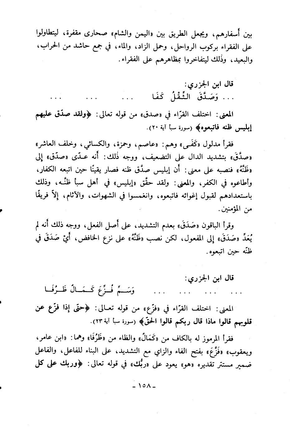 المعنى: اختلف القرّاء في «صدق» من قوله تعالى: وَلَقَدْ صَدَّقَ عَلَيْهِمْ إِبْلِيسُ ظَنَّهُ فَاتَّبَعُوهُ (سورة سبأ آية 20).