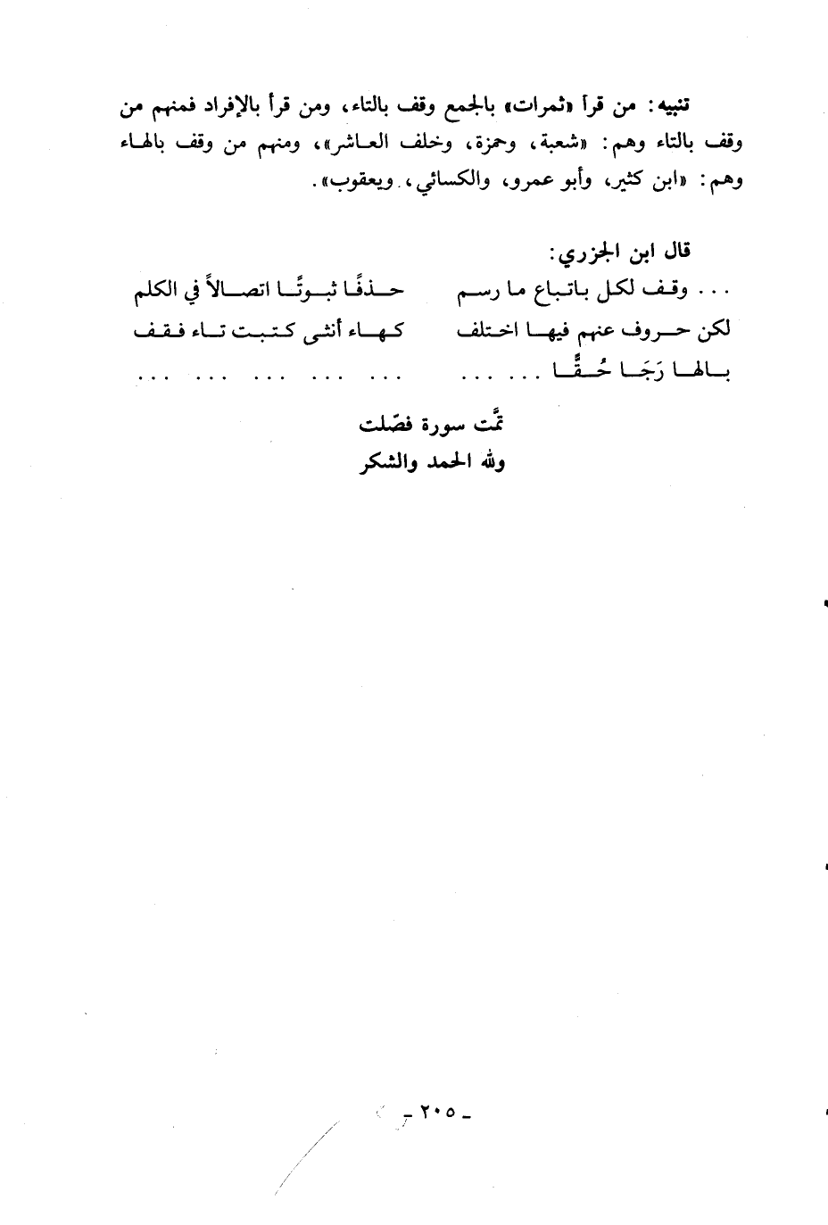 تنبيه: من قرأ «ثمرات» بالجمع وقف بالتاء، ومن قرأ بالإفراد فمنهم من وقف بالتاء وهم: «شعبة، وحمزة، وخلف العاشر»، ومنهم من وقف بالهاء وهم: «ابن كثير، وأبو عمرو، والكسائي، ويعقوب».