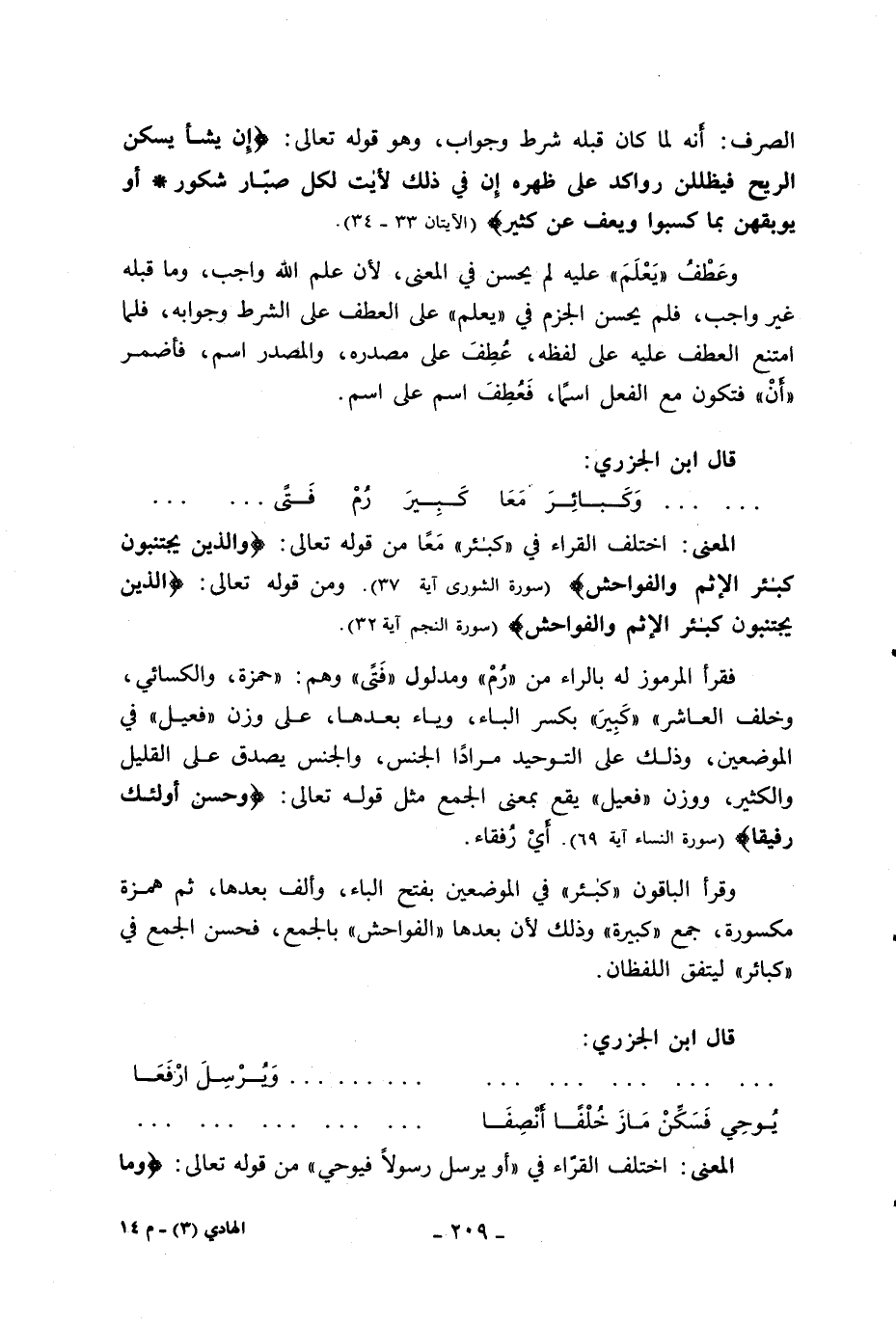 المعنى: اختلف القراء في «كبئر» معا من قوله تعالى: وَالَّذِينَ يَجْتَنِبُونَ كَبائِرَ الْإِثْمِ وَالْفَواحِشَ (سورة الشورى آية 37). ومن قوله تعالى: الَّذِينَ يَجْتَنِبُونَ كَبائِرَ الْإِثْمِ وَالْفَواحِشَ (سورة النجم آية 32).
