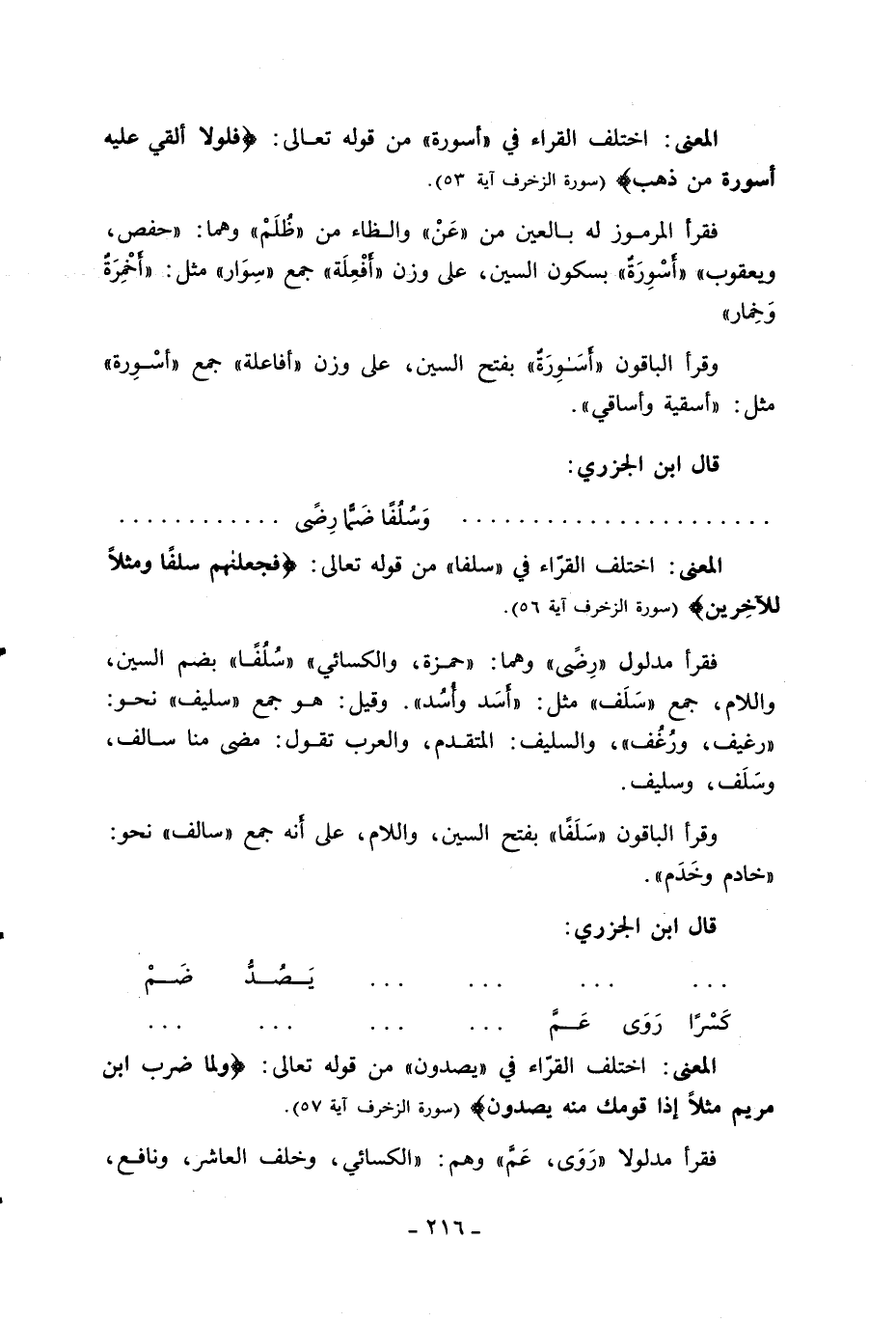 المعنى: اختلف القرّاء في «أسورة» من قوله تعالى: فَلَوْلا أُلْقِيَ عَلَيْهِ أَسْوِرَةٌ مِنْ ذَهَبٍ (سورة الزخرف آية 53).