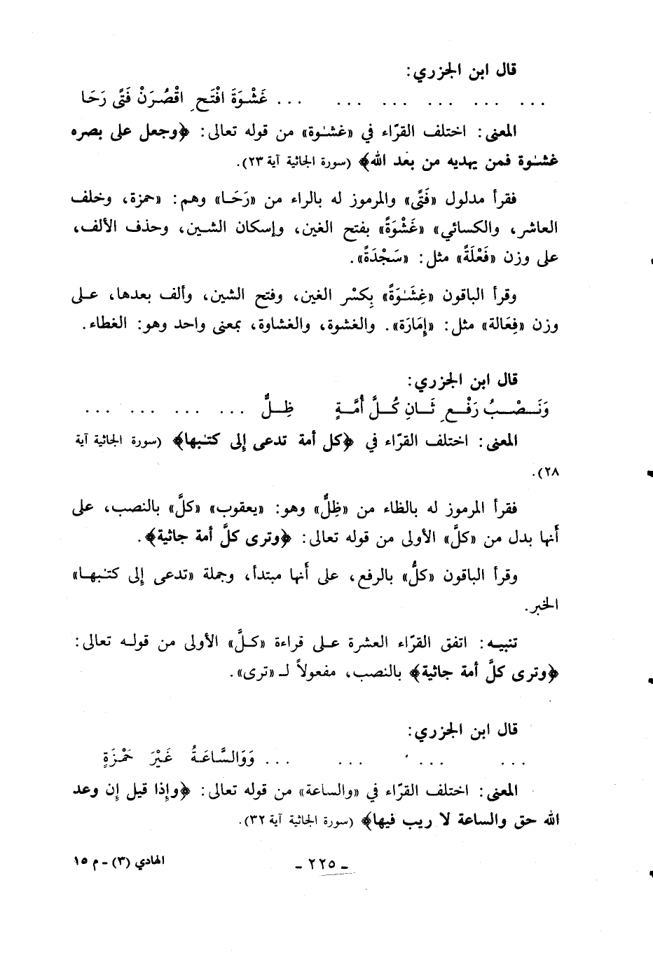 المعنى: اختلف القرّاء في كُلُّ أُمَّةٍ تُدْعى إِلى كِتابِهَا (سورة الجاثية آية 28).
