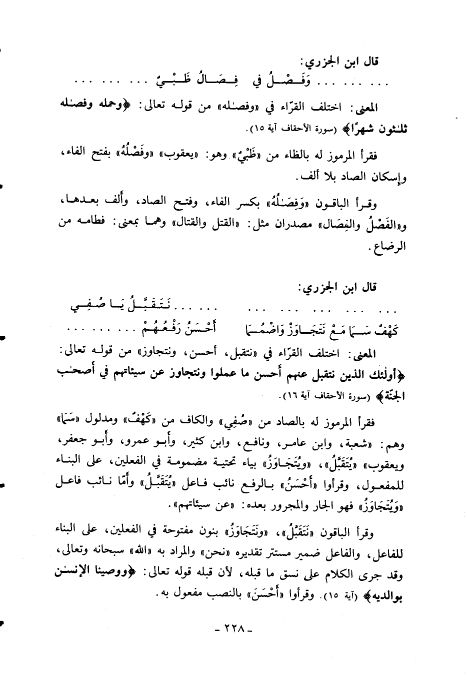المعنى: اختلف القرّاء في «وفصله» من قوله تعالى: وَحَمْلُهُ وَفِصالُهُ ثَلاثُونَ شَهْراً (سورة الأحقاف آية 15).
