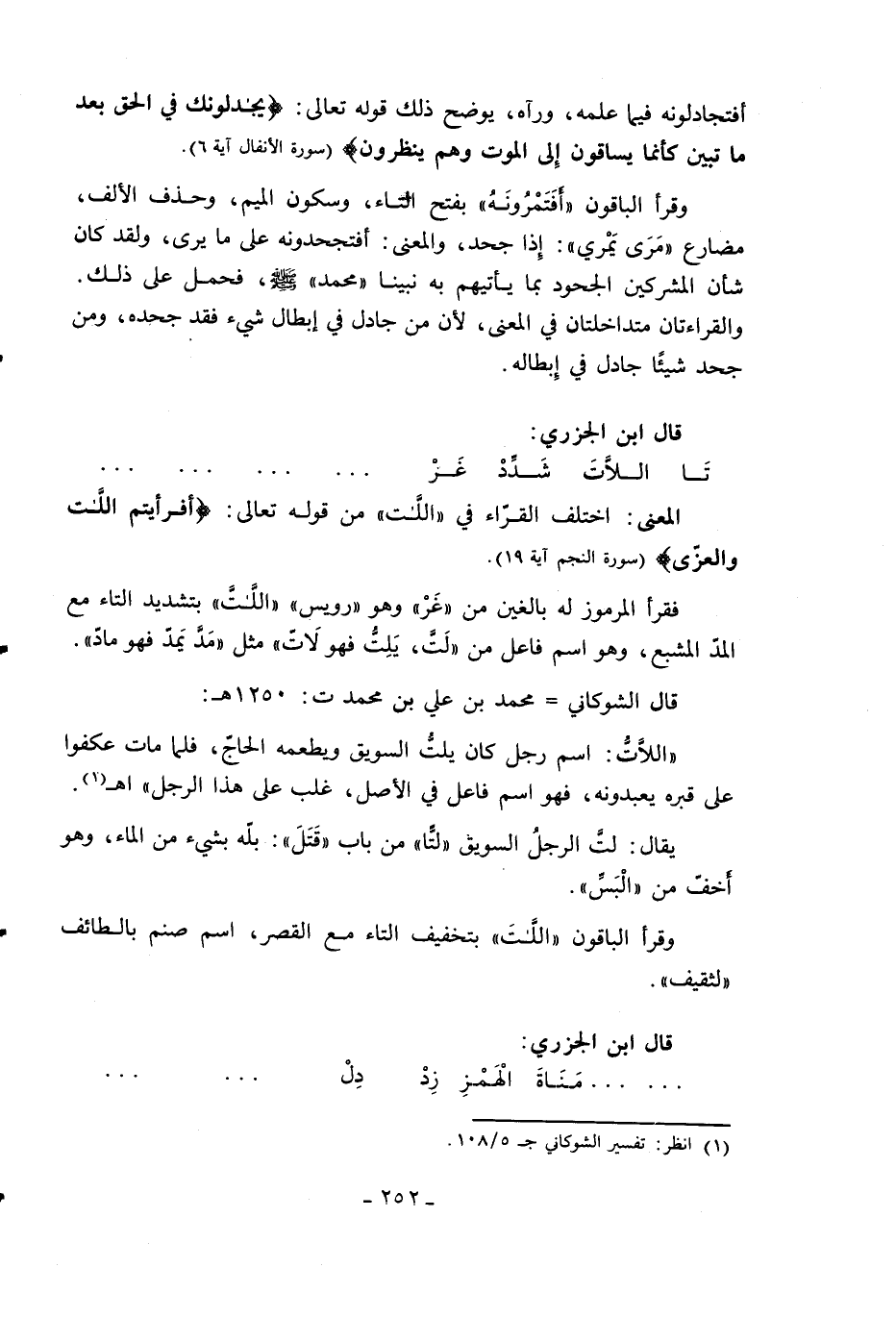 المعنى: اختلف القرّاء في «اللَّاتَ» من قوله تعالى: أَفَرَأَيْتُمُ اللَّاتَ وَالْعُزَّى (سورة النجم آية 19).