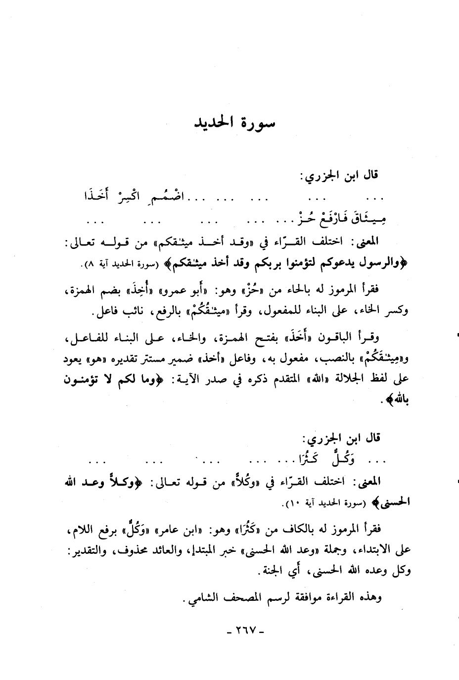 فقرأ المرموز له بالكاف من «كثرا» وهو: «ابن عامر» «وكلّ» برفع اللام، على الابتداء، وجملة «وعد الله الحسنى» خبر المبتدإ، والعائد محذوف، والتقدير: