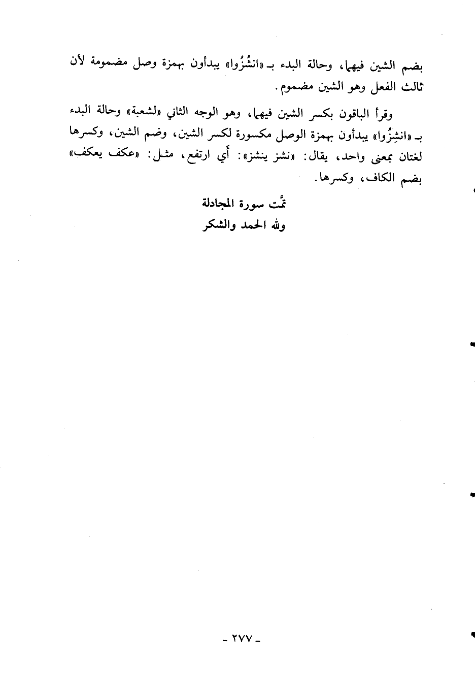 تمّت سورة المجادلة ولله الحمد والشكر