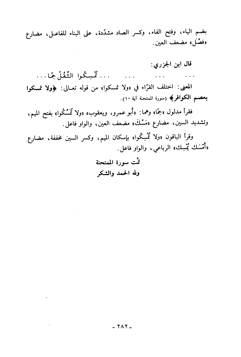 تمّت سورة الممتحنة ولله الحمد والشكر