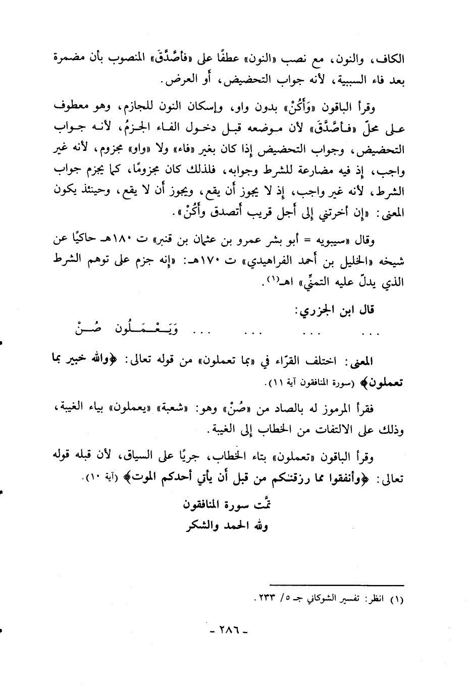تمّت سورة المنافقون ولله الحمد والشكر