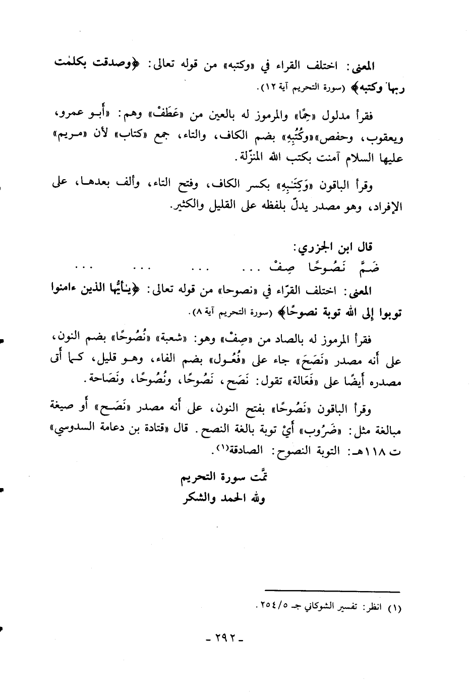 المعنى: اختلف القرّاء في «وكتبه» من قوله تعالى: وَصَدَّقَتْ بِكَلِماتِ رَبِّها وَكُتُبِهِ (سورة التحريم آية 12).