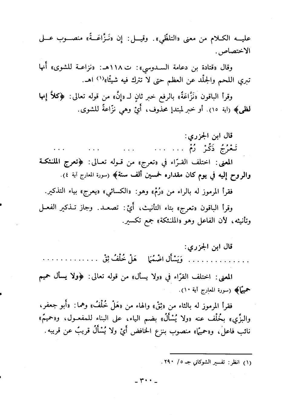 وقرأ الباقون «نزّاعة» بالرفع خبر ثان ل «إنّ» من قوله تعالى: كَلَّا إِنَّها لَظى (آية 15). أو خبر لمبتدإ محذوف، أي وهي نزّاعة للشوى.