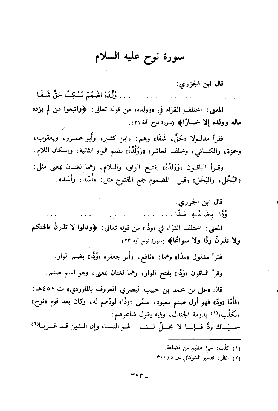 المعنى: اختلف القرّاء في «ودّا» من قوله تعالى: وَقالُوا لا تَذَرُنَّ آلِهَتَكُمْ وَلا تَذَرُنَّ وَدًّا وَلا سُواعاً (سورة نوح آية 23).