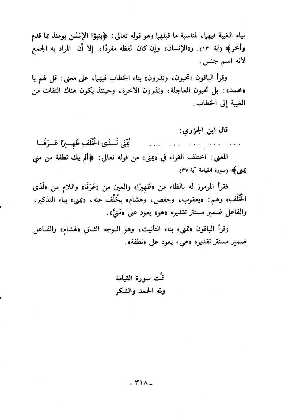 تمّت سورة القيامة ولله الحمد والشكر