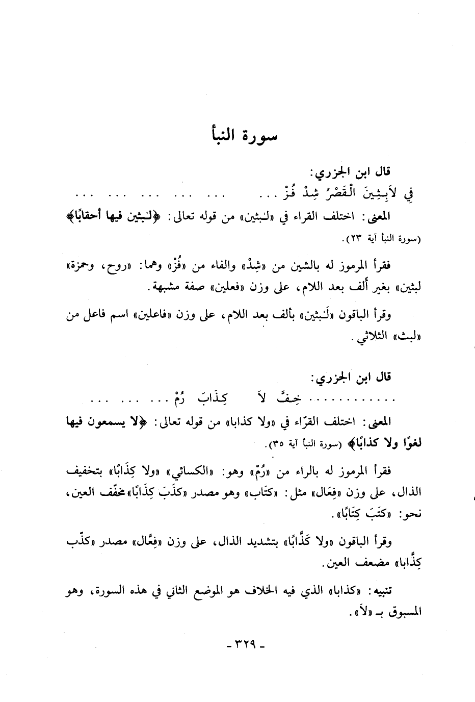 المعنى: اختلف القرّاء في «لبثين» من قوله تعالى: لابِثِينَ فِيها أَحْقاباً (سورة النبأ آية 23).