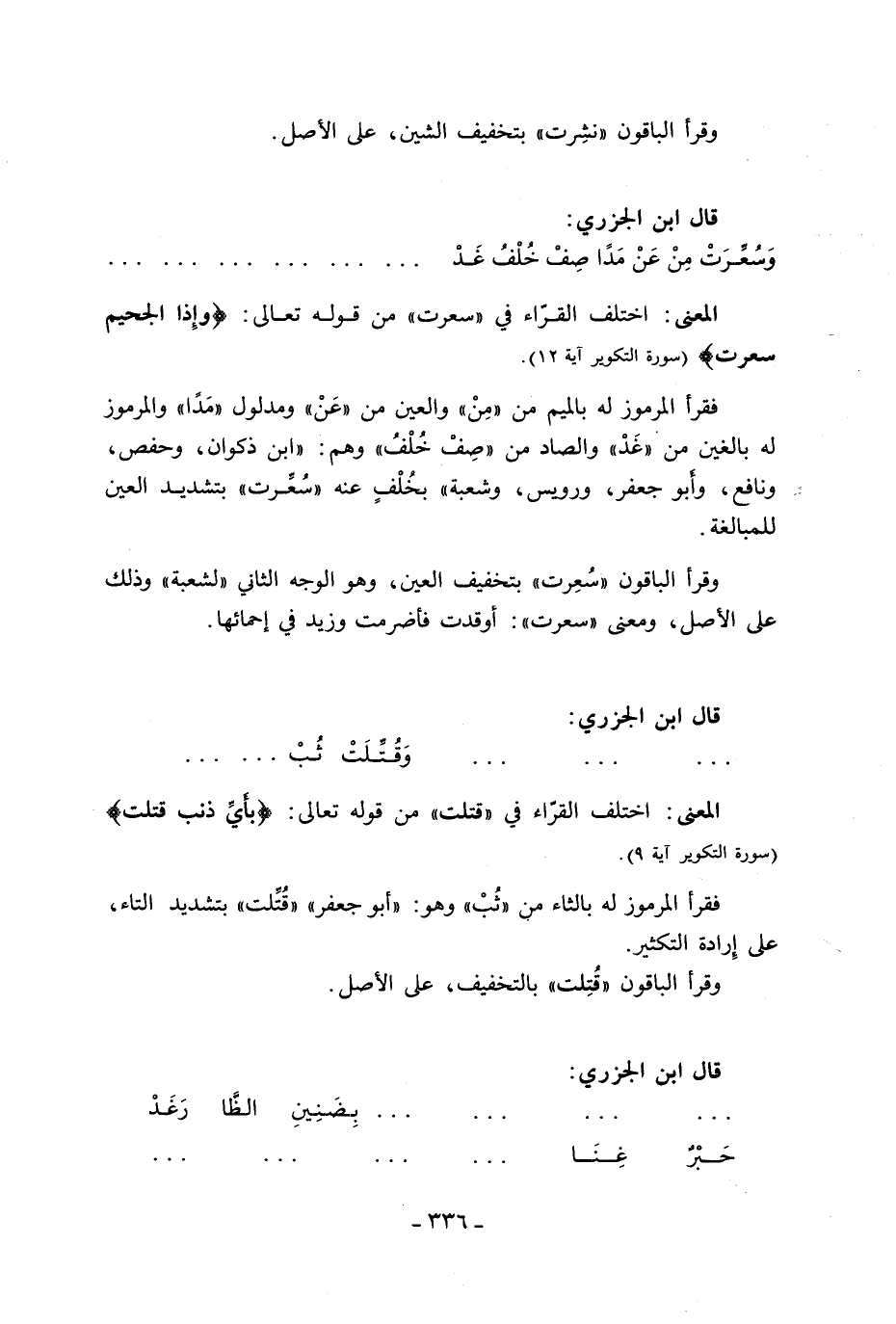 المعنى: اختلف القرّاء في «قتلت» من قوله تعالى: بِأَيِّ ذَنْبٍ قُتِلَتْ (سورة التكوير آية 9).