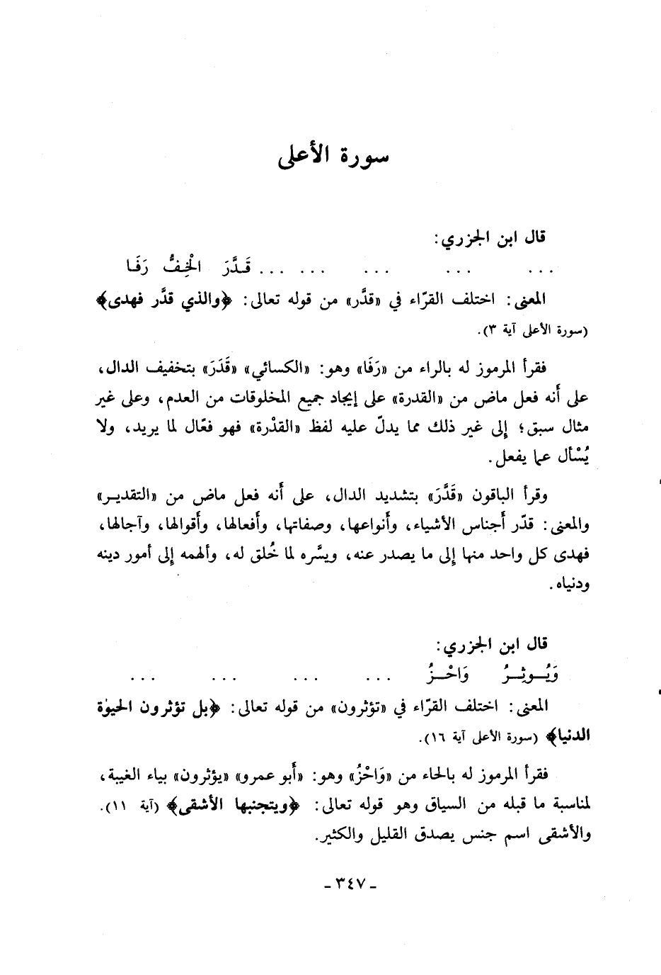 المعنى: اختلف القرّاء في «قدّر» من قوله تعالى: وَالَّذِي قَدَّرَ فَهَدى (سورة الأعلى آية 3).
