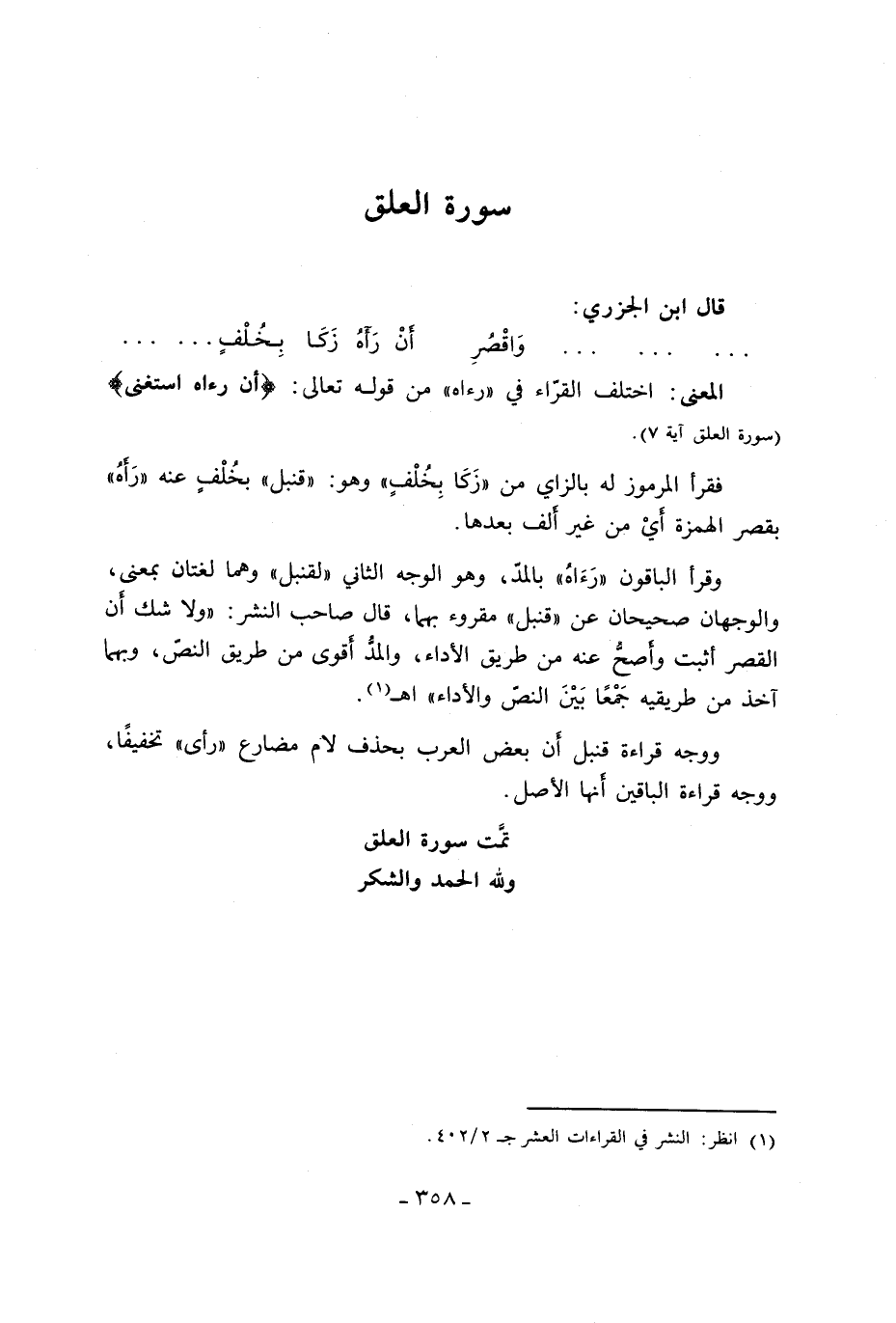 (1) انظر: النشر في القراءات العشر ج 2/ 402.