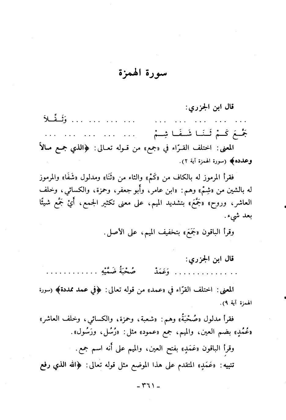 المعنى: اختلف القرّاء في «جمع» من قوله تعالى: الَّذِي جَمَعَ مالًا وَعَدَّدَهُ (سورة الهمزة آية 2).