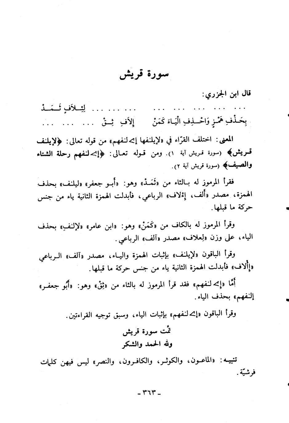 تمّت سورة قريش ولله الحمد والشكر