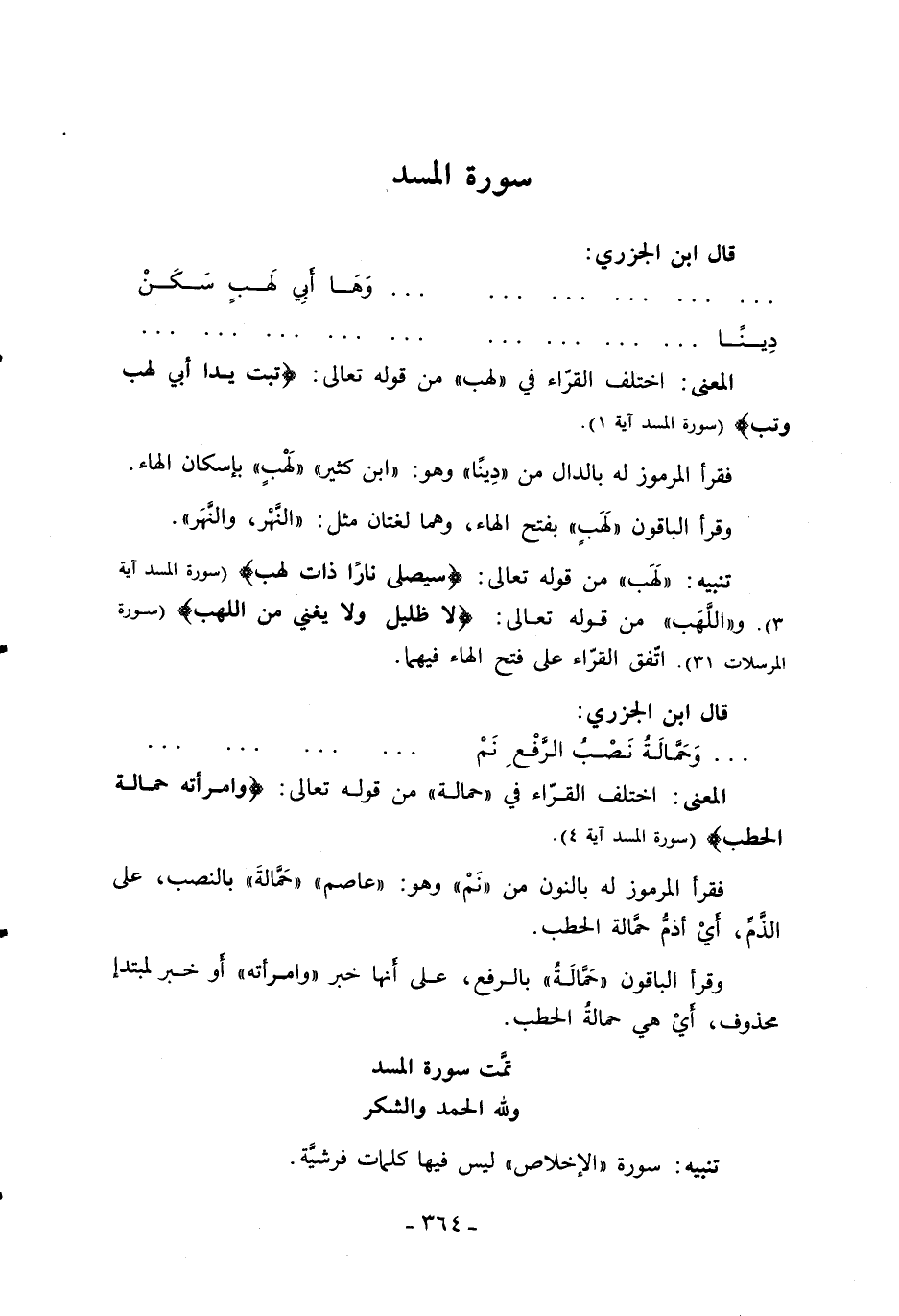 المعنى: اختلف القرّاء في «لهب» من قوله تعالى: تَبَّتْ يَدا أَبِي لَهَبٍ وَتَبَّ (سورة المسد آية 1).