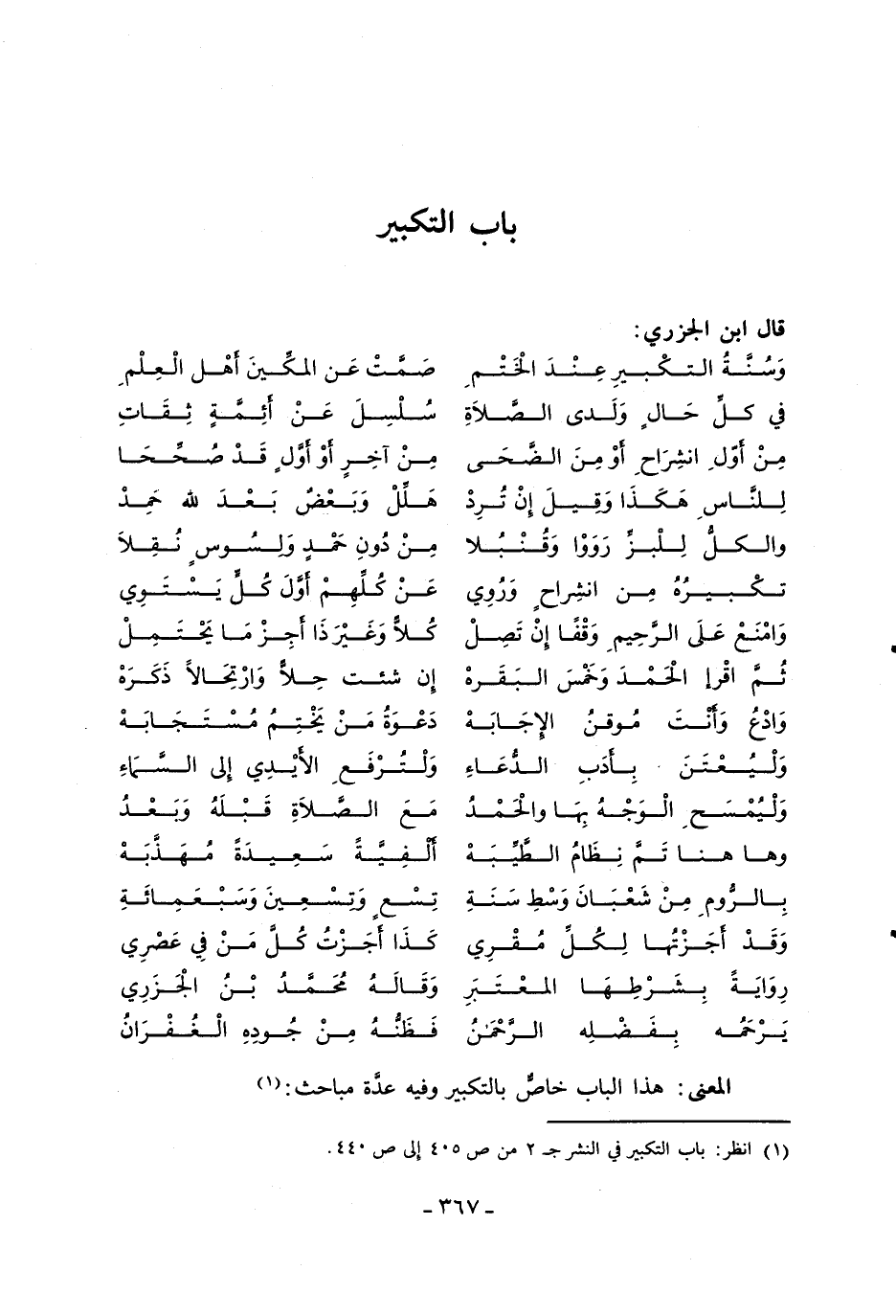 (1) انظر: باب التكبير في النشر ج 2 من ص 405 إلى ص 440.