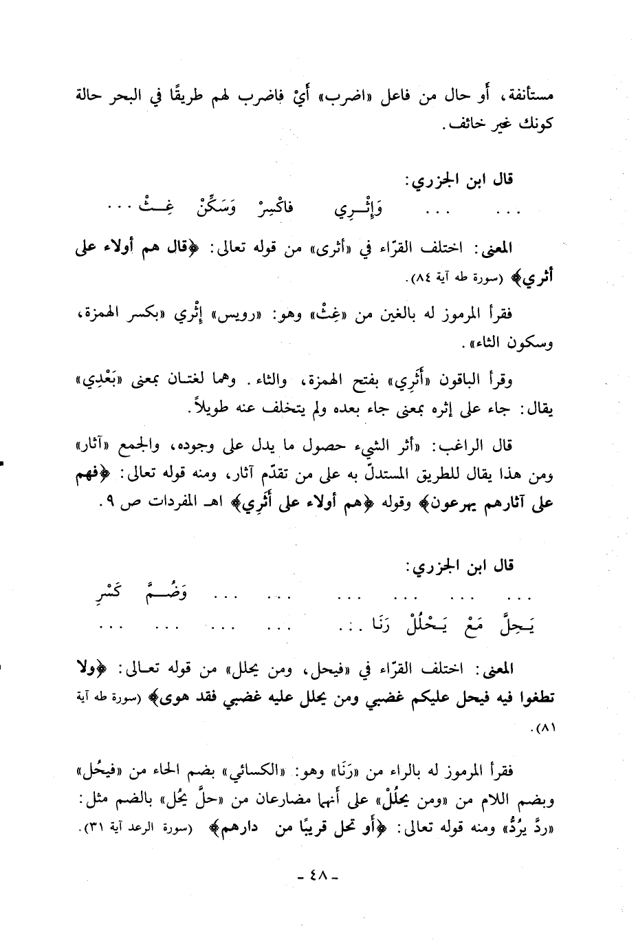 المعنى: اختلف القرّاء في «أثرى» من قوله تعالى: قالَ هُمْ أُولاءِ عَلى أَثَرِي (سورة طه آية 84).