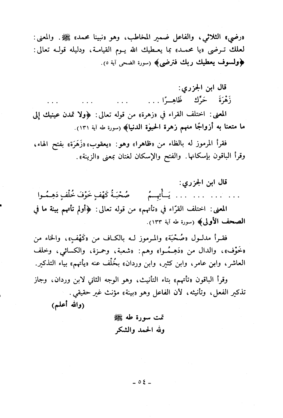 (والله أعلم) تمت سورة طه صلى الله عليه وسلم ولله الحمد والشكر