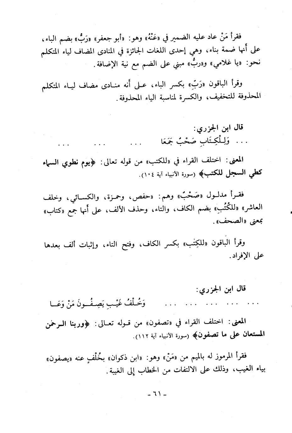 المعنى: اختلف القرّاء في «للكتب» من قوله تعالى: يَوْمَ نَطْوِي السَّماءَ كَطَيِّ السِّجِلِّ لِلْكُتُبِ (سورة الأنبياء آية 104).