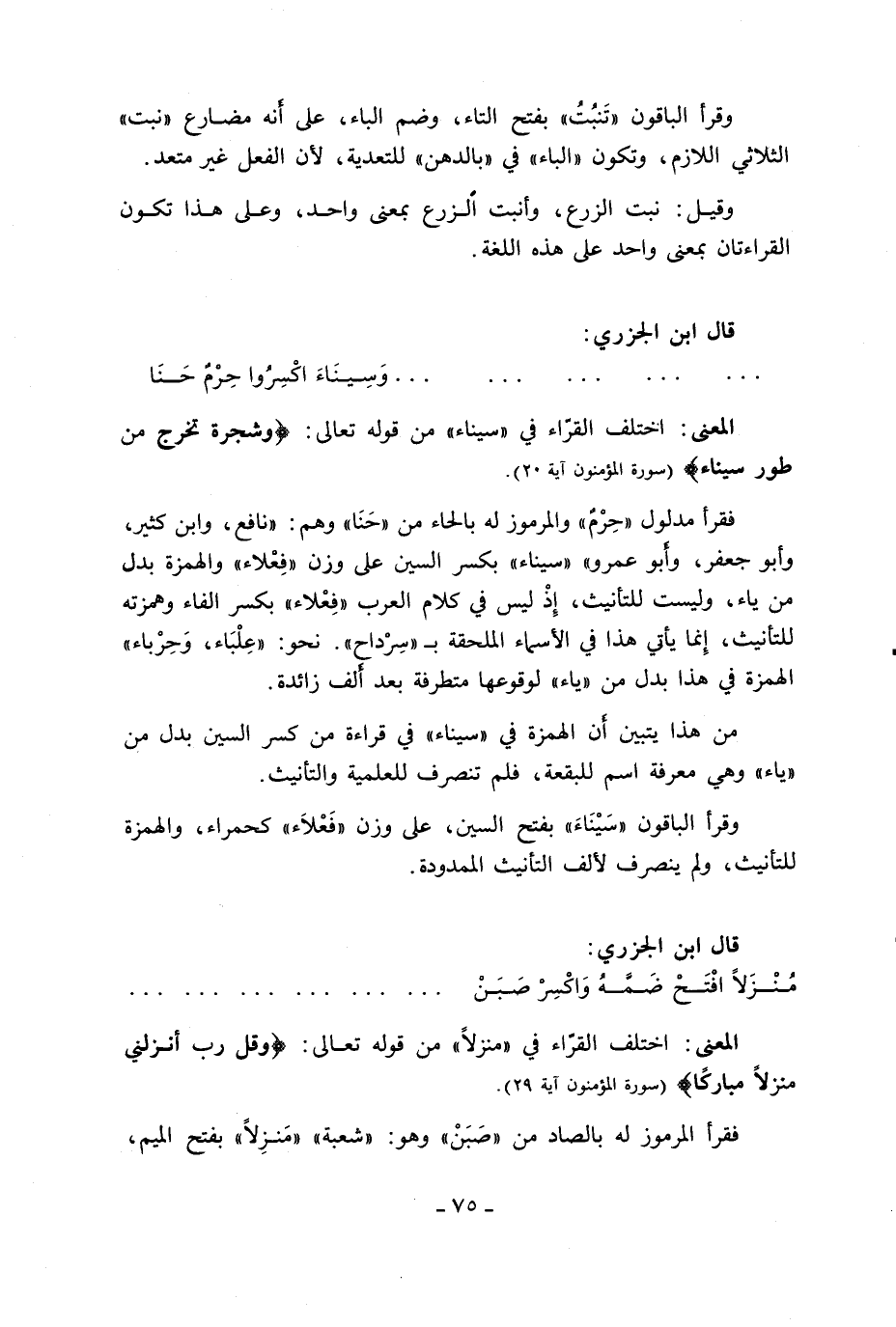 المعنى: اختلف القرّاء في «سيناء» من قوله تعالى: وَشَجَرَةً تَخْرُجُ مِنْ طُورِ سَيْناءَ (سورة المؤمنون آية 20).