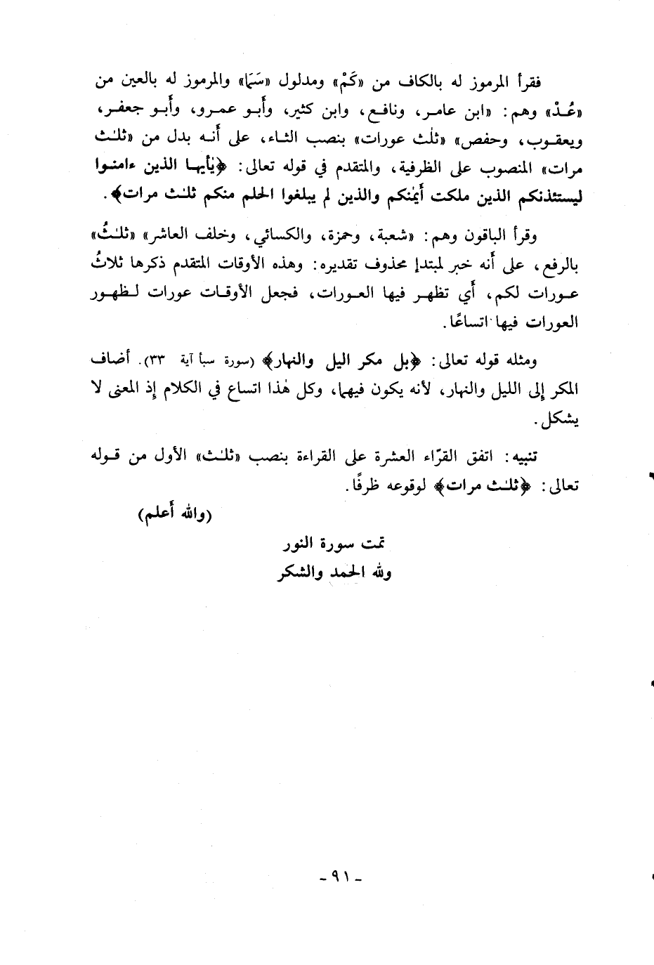 (والله أعلم) تمت سورة النور ولله الحمد والشكر