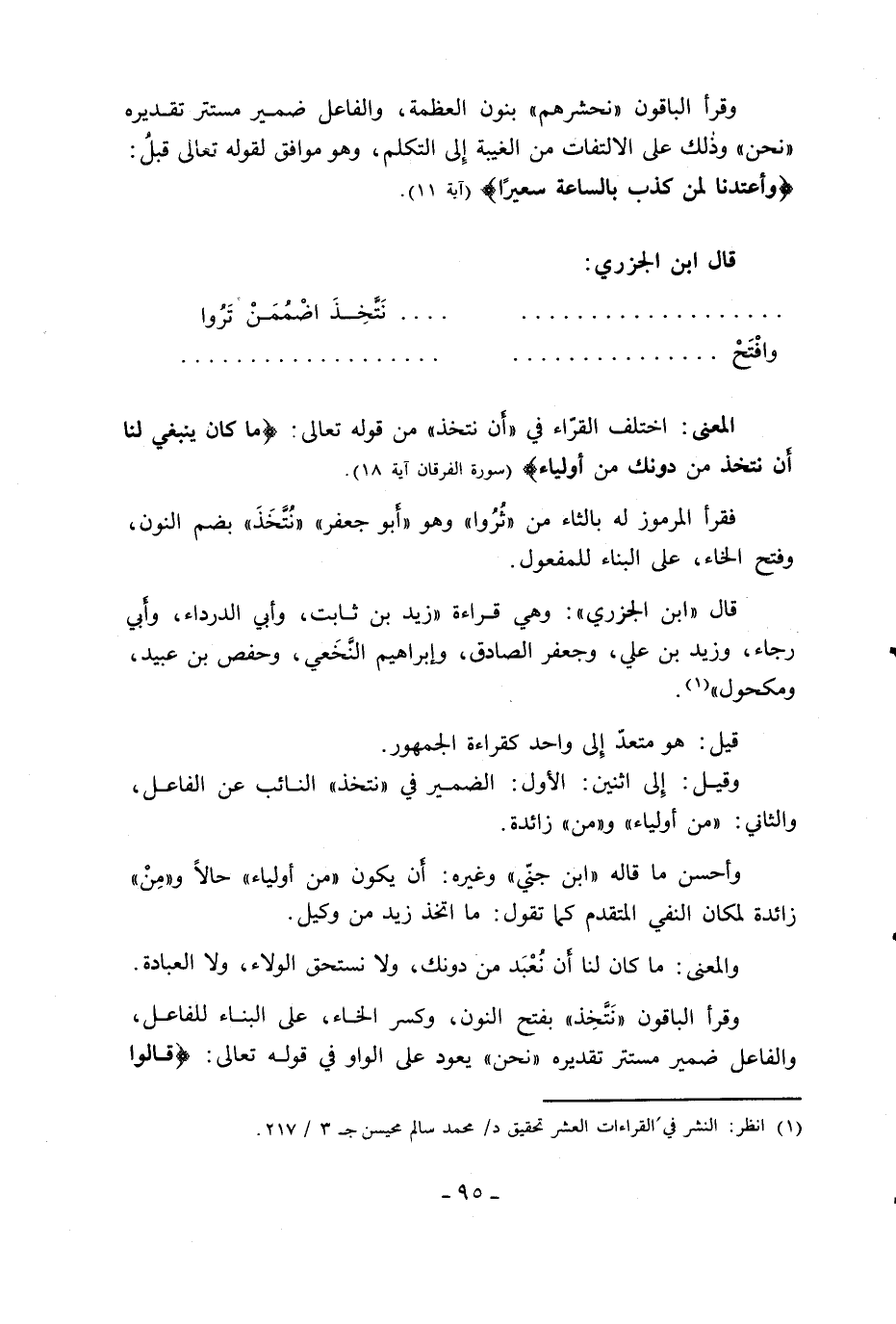 (1) انظر: النشر في القراءات العشر تحقيق د/ محمد سالم محيسن ج 3/ 217.