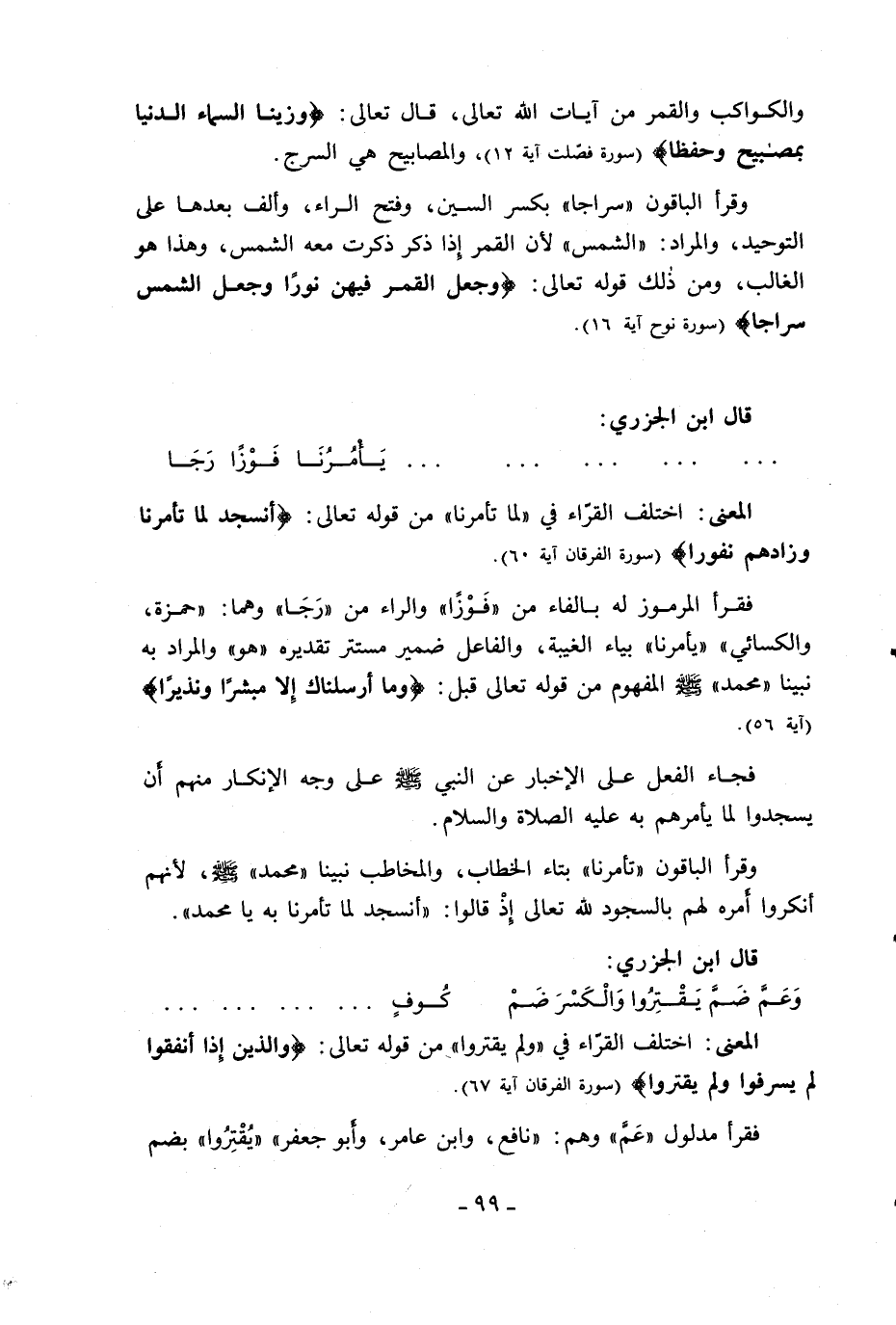 فقرأ مدلول «عمّ» وهم: «نافع، وابن عامر، وأبو جعفر» «يقتروا» بضم