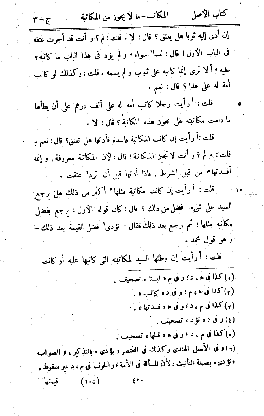 قلت أَرَأَيْت إِن كَانَت مُكَاتبَة مثلهَا أَكثر من ذَلِك هَل يرجع السَّيِّد على شَيْء فضل من ذَلِك قَالَ كَانَ قَوْله الأول يرجع بِفضل مُكَاتبَة مثلهَا ثمَّ رَجَعَ بعد ذَلِك فَقَالَ تُؤدِّي فضل الْقيمَة بعد ذَلِك وَهُوَ قَول مُحَمَّد