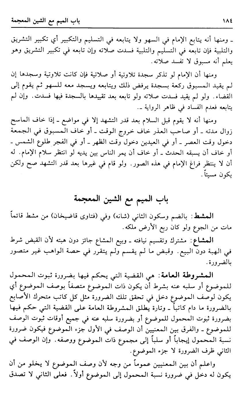 الْمشَاع: مُشْتَرك وتقسيم نيافته - وَبيع الْمشَاع جَائِز دون هِبته لِأَن الْقَبْض شَرط فِي الْهِبَة دون البيع. وَقبض مَا لم يقسم وَلم يَتَقَرَّر فِي حِصَّة الْوَاهِب غير مُتَصَوّر بِالضَّرُورَةِ.