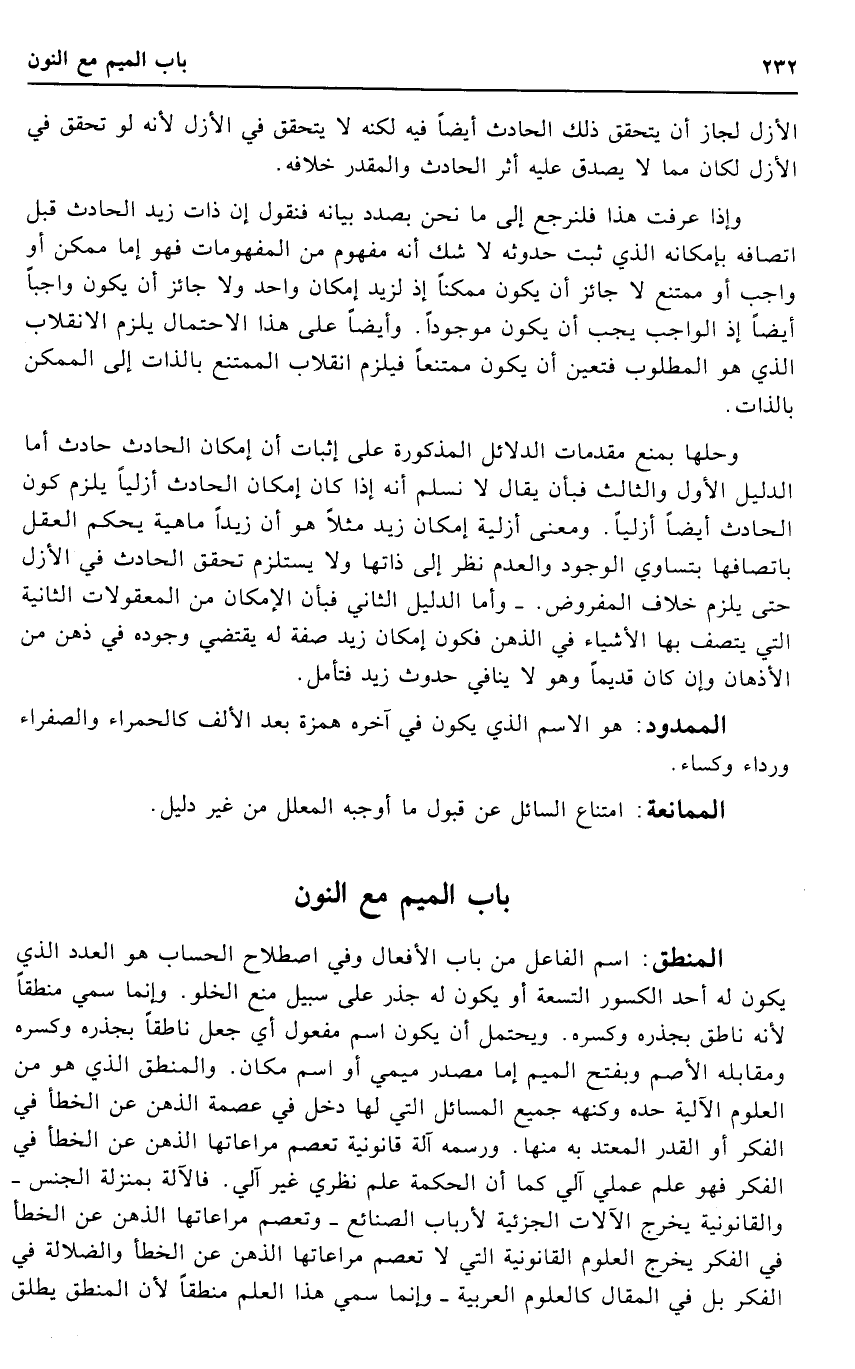 وَإِذا عرفت هَذَا فلنرجع إِلَى مَا نَحن بصدد بَيَانه فَنَقُول إِن ذَات زيد الْحَادِث قبل اتصافه بإمكانه الَّذِي ثَبت حُدُوثه لَا شكّ أَنه مَفْهُوم من المفهومات فَهُوَ إِمَّا مُمكن أَو وَاجِب أَو مُمْتَنع لَا جَائِز أَن يكون مُمكنا إِذْ لزيد إِمْكَان وَاحِد وَلَا جَائِز أَن يكون وَاجِبا أَيْضا إِذْ الْوَاجِب يجب أَن يكون مَوْجُودا. وَأَيْضًا على هَذَا الِاحْتِمَال يلْزم الانقلاب الَّذِي هُوَ الْمَطْلُوب فَتعين أَن يكون مُمْتَنعا فَيلْزم انقلاب الْمُمْتَنع بِالذَّاتِ إِلَى الْمُمكن بِالذَّاتِ.