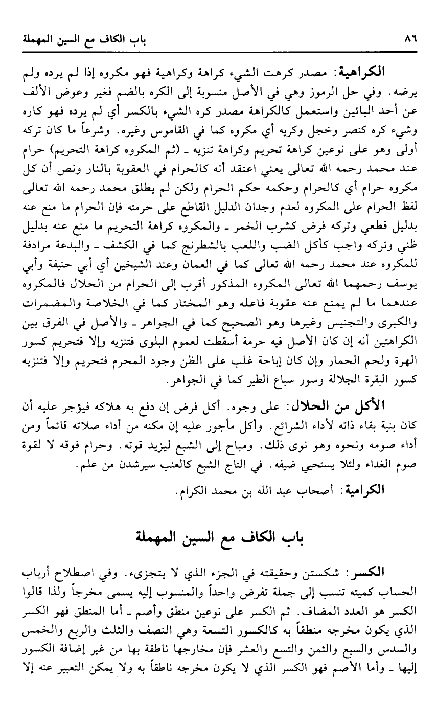 الكرامية: أَصْحَاب عبد الله بن مُحَمَّد الْكِرَام.