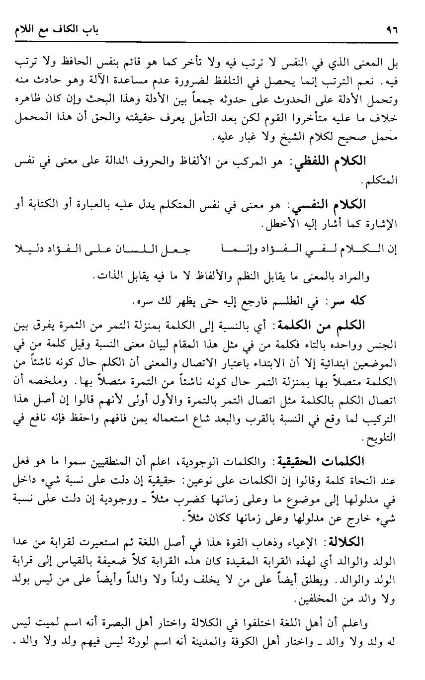 بل الْمَعْنى الَّذِي فِي النَّفس لَا ترَتّب فِيهِ وَلَا تَأَخّر كَمَا هُوَ قَائِم بِنَفس الْحَافِظ وَلَا ترَتّب فِيهِ. نعم الترتب إِنَّمَا يحصل فِي التَّلَفُّظ لضَرُورَة عدم مساعدة الْآلَة وَهُوَ حَادث مِنْهُ وَتحمل الْأَدِلَّة على الْحُدُوث على حُدُوثه جمعا بَين الْأَدِلَّة وَهَذَا الْبَحْث وَإِن كَانَ ظَاهره خلاف مَا عَلَيْهِ متأخروا الْقَوْم لَكِن بعد التَّأَمُّل يعرف حَقِيقَته وَالْحق أَن هَذَا الْمحمل محمل صَحِيح لكَلَام الشَّيْخ وَلَا غُبَار عَلَيْهِ.
