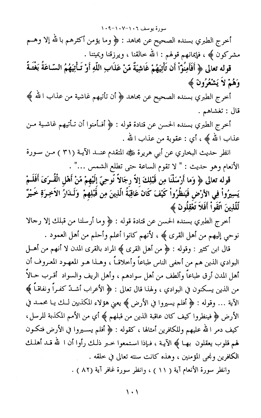 قوله تعالى (وَمَا أَرْسَلْنَا مِنْ قَبْلِكَ إِلَّا رِجَالًا نُوحِي إِلَيْهِمْ مِنْ أَهْلِ الْقُرَى أَفَلَمْ يَسِيرُوا فِي الْأَرْضِ فَيَنْظُرُوا كَيْفَ كَانَ عَاقِبَةُ الَّذِينَ مِنْ قَبْلِهِمْ وَلَدَارُ الْآخِرَةِ خَيْرٌ لِلَّذِينَ اتَّقَوْا أَفَلَا تَعْقِلُونَ)