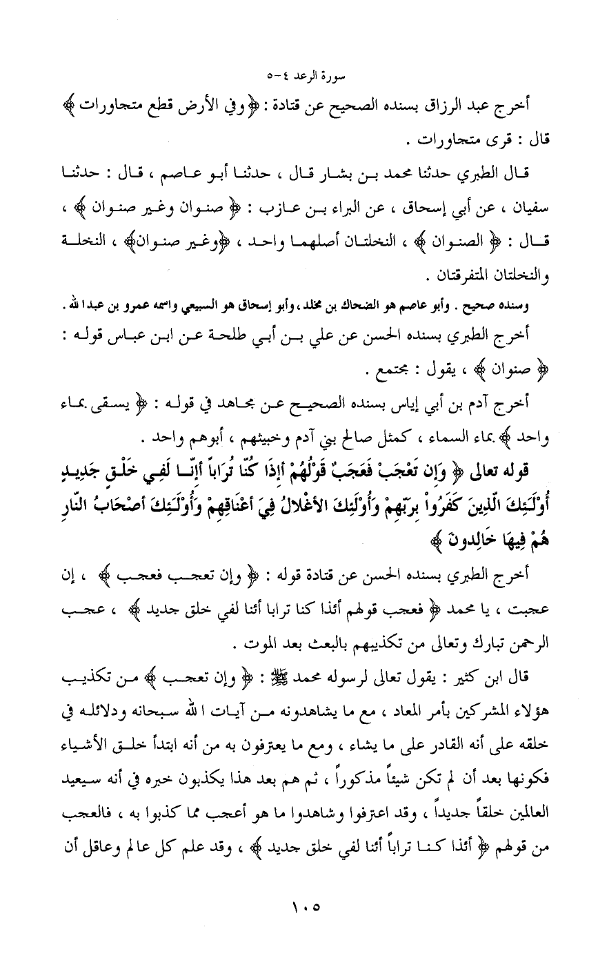 أخرج الطبري بسنده الحسن عن قتادة قوله: (وإن تعجب فعجب) ، إن عجبت، يا محمد (فعجب قولهم أئذا كنا ترابا أئنا لفي خلق جديد) ، عجب الرحمن تبارك وتعالى من تكذيبهم بالبعث بعد الموت.