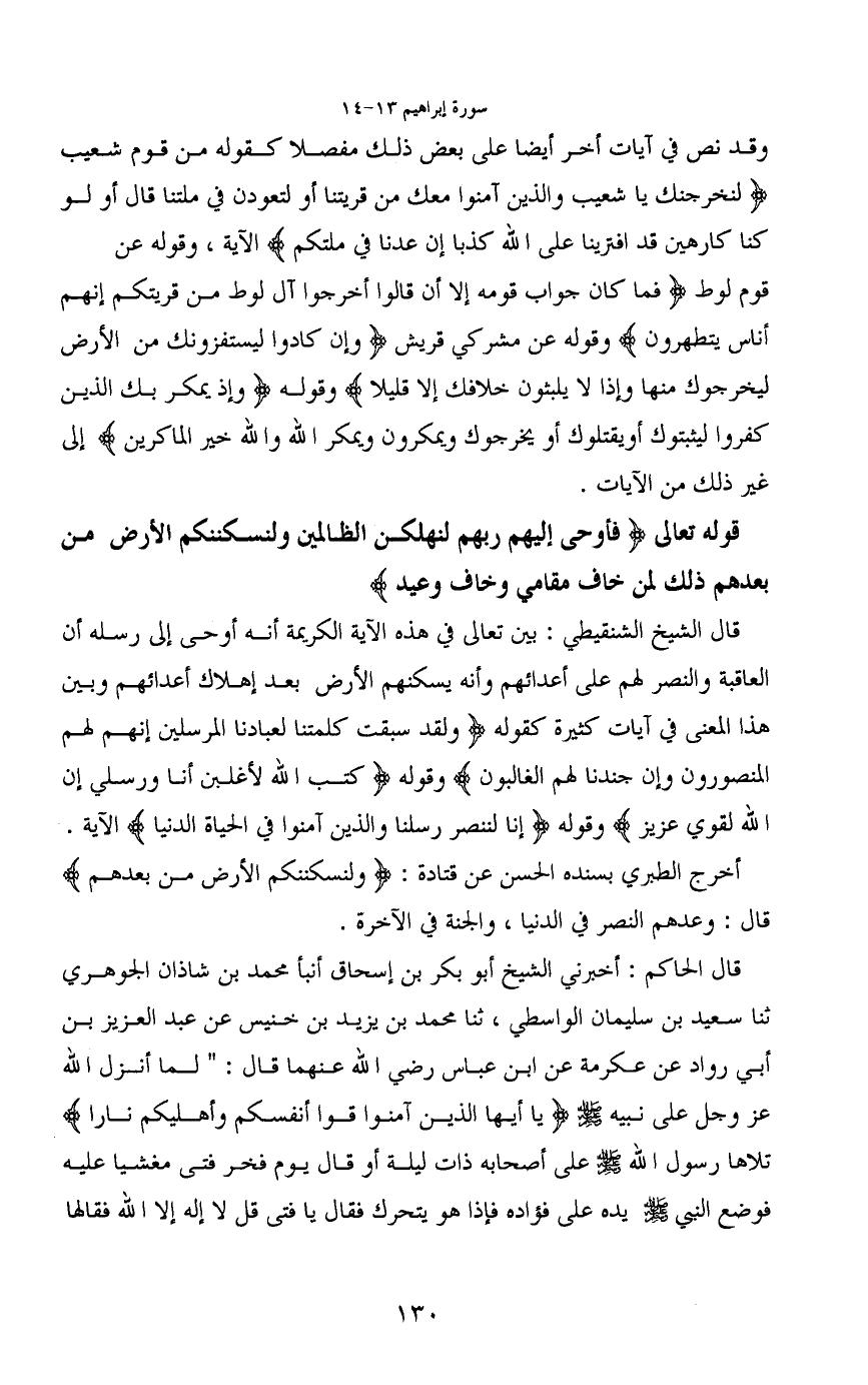قال الشيخ الشنقيطي: بين تعالى في هذه الآية الكريمة أنه أوحى إلى رسله أن العاقبة والنصر لهم على أعدائهم وأنه يسكنهم الأرض بعد إهلاك أعدائهم وبين هذا المعنى في آيات كثيرة كقوله (ولقد سبقت كلمتنا لعبادنا المرسلين إنهم لهم المنصورون وإن جندنا لهم الغالبون) وقوله (كتب الله لأغلبن أنا ورسلي إن الله لقوي عزيز) وقوله (إنا لننصر رسلنا والذين آمنوا في الحياة الدنيا) الآية.